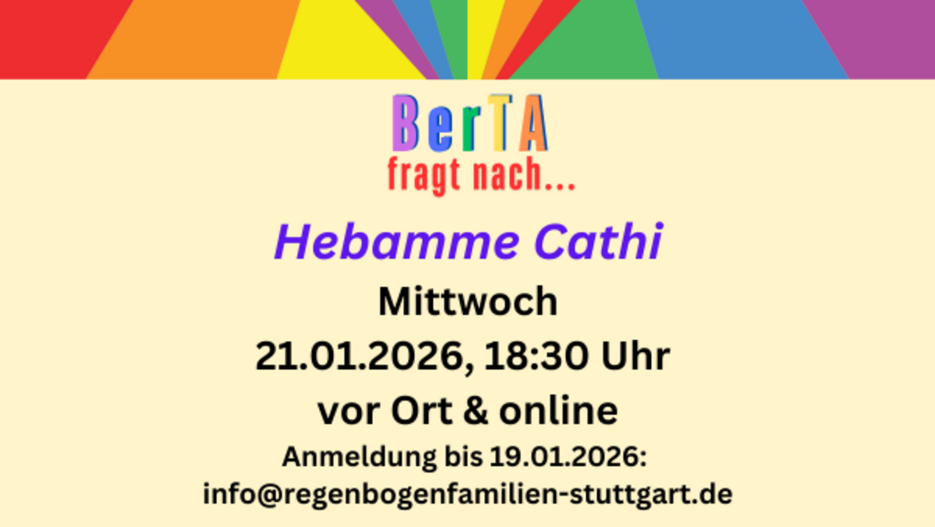 Wir freuen uns darauf, Dich bei BerTA fragt nach... Hebamme Cathi begrüßen zu dürfen.