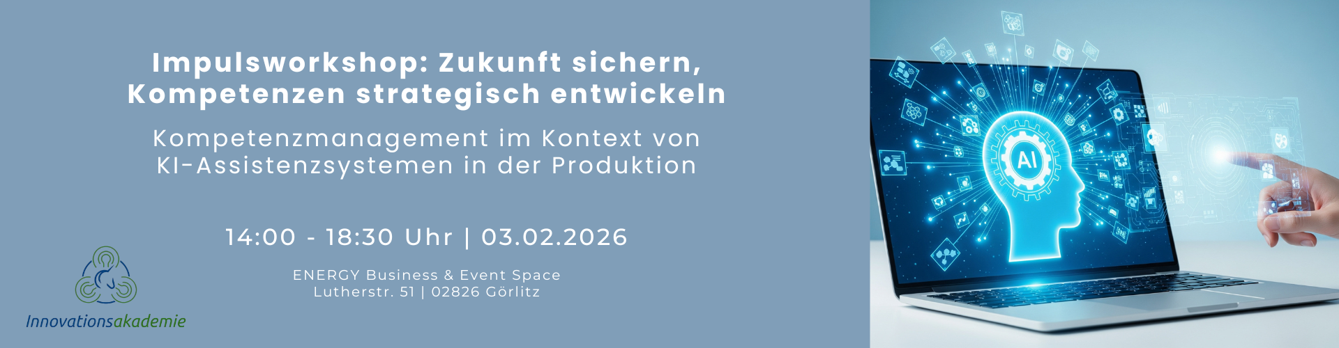 Die Einführung von KI-Assistenzsystemen verändert Produktionsprozesse grundlegend – und stellt Unternehmen vor neue Anforderungen in Bezug auf Qualifikation, Rollenverständnis und Kompetenzentwicklung. Dieser Impulsworkshop zeigt, wie Kompetenzmanagement im Zeitalter von KI und Mensch-Technik-Interaktion strategisch gestaltet werden kann und wie Unternehmen Kompetenzprofile für KI-unterstützte Tätigkeiten entwickeln.